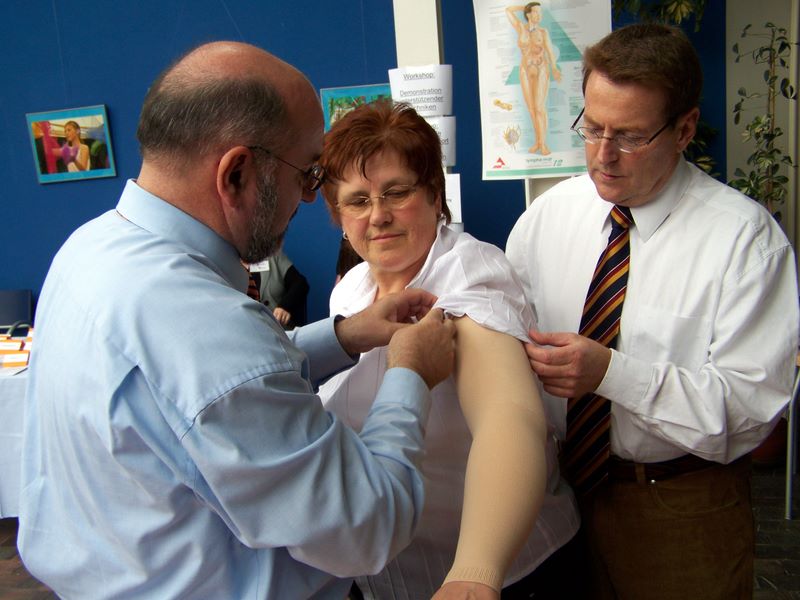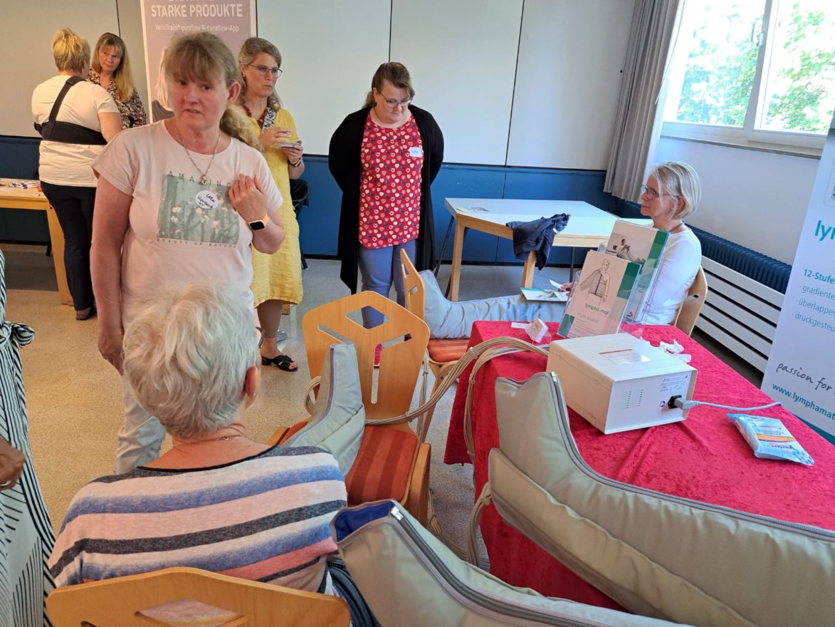 Kompressionsbestrumpfung auf. Entstauende Übungen/Sport wurden unter zahlreicher Teilnahme