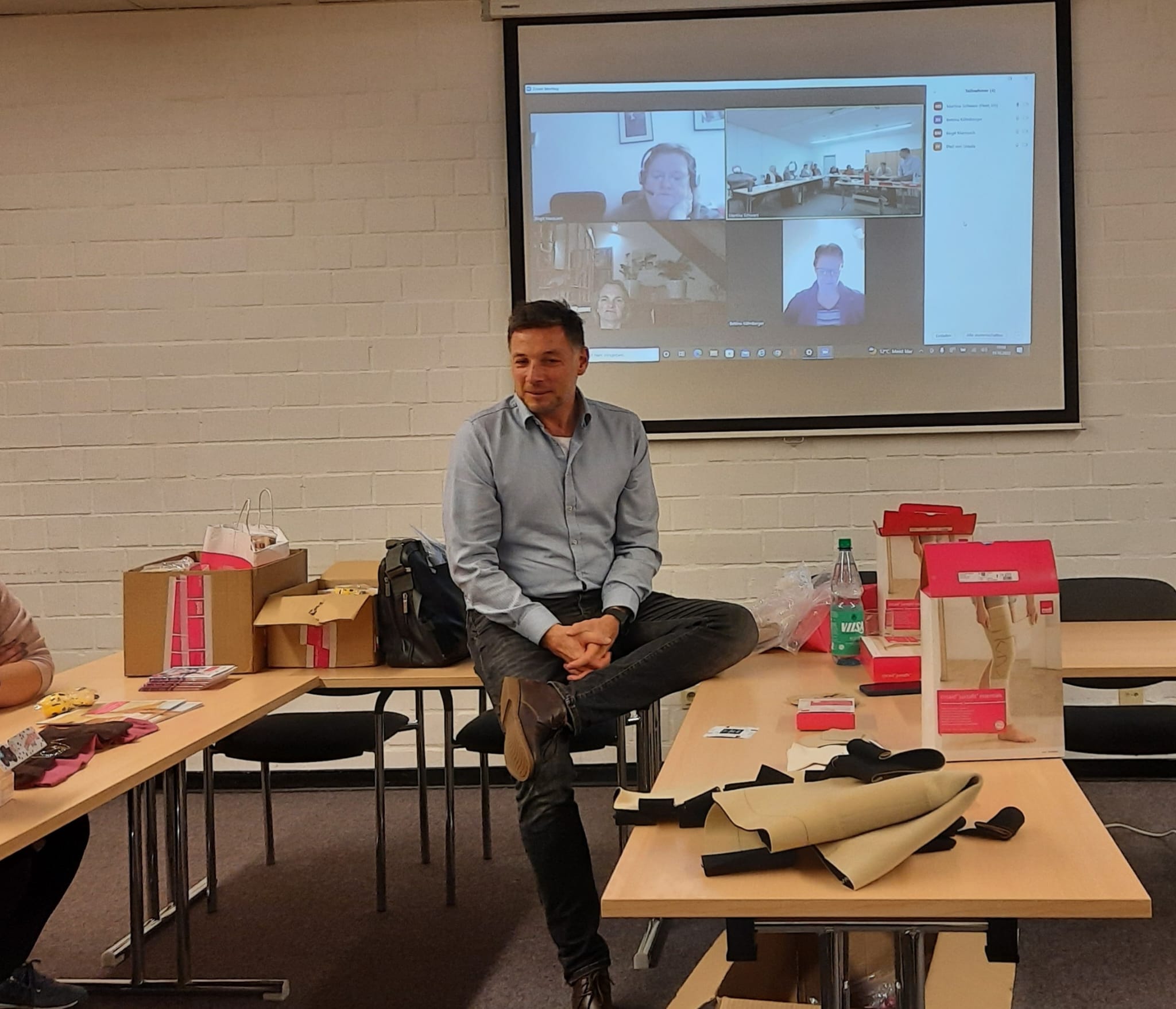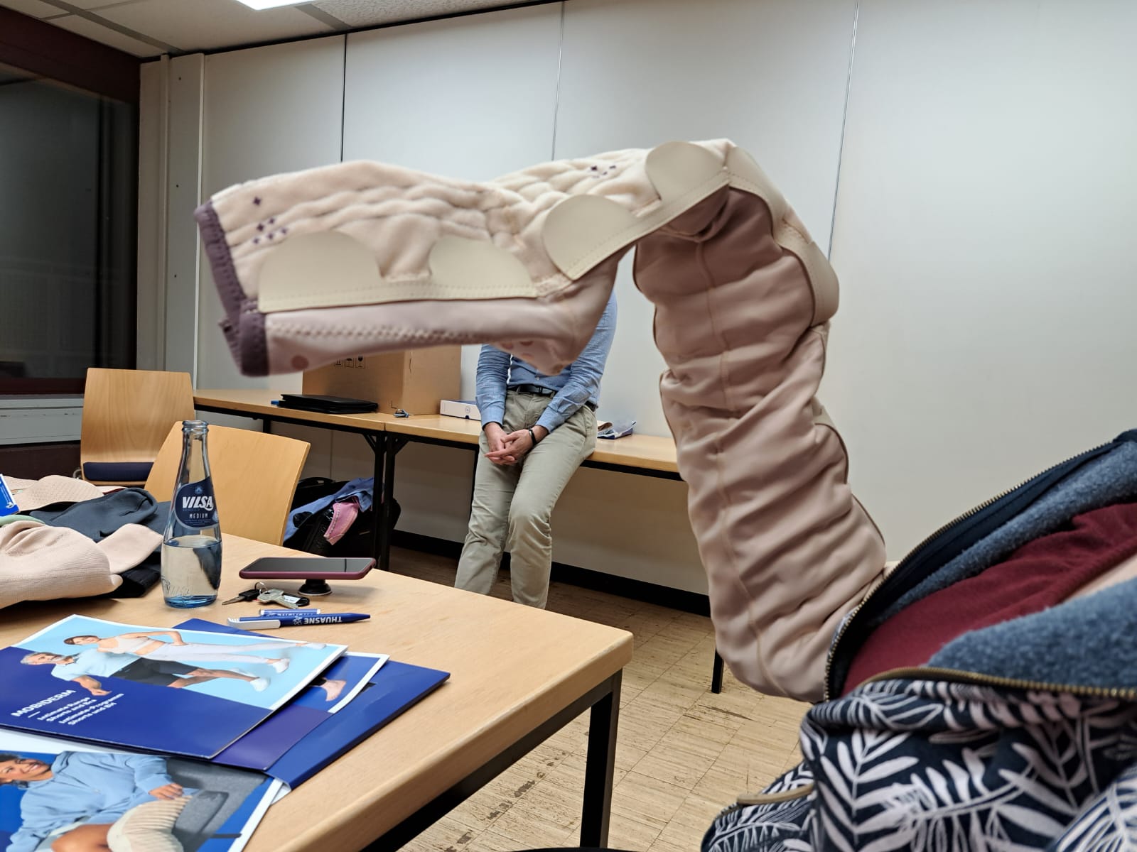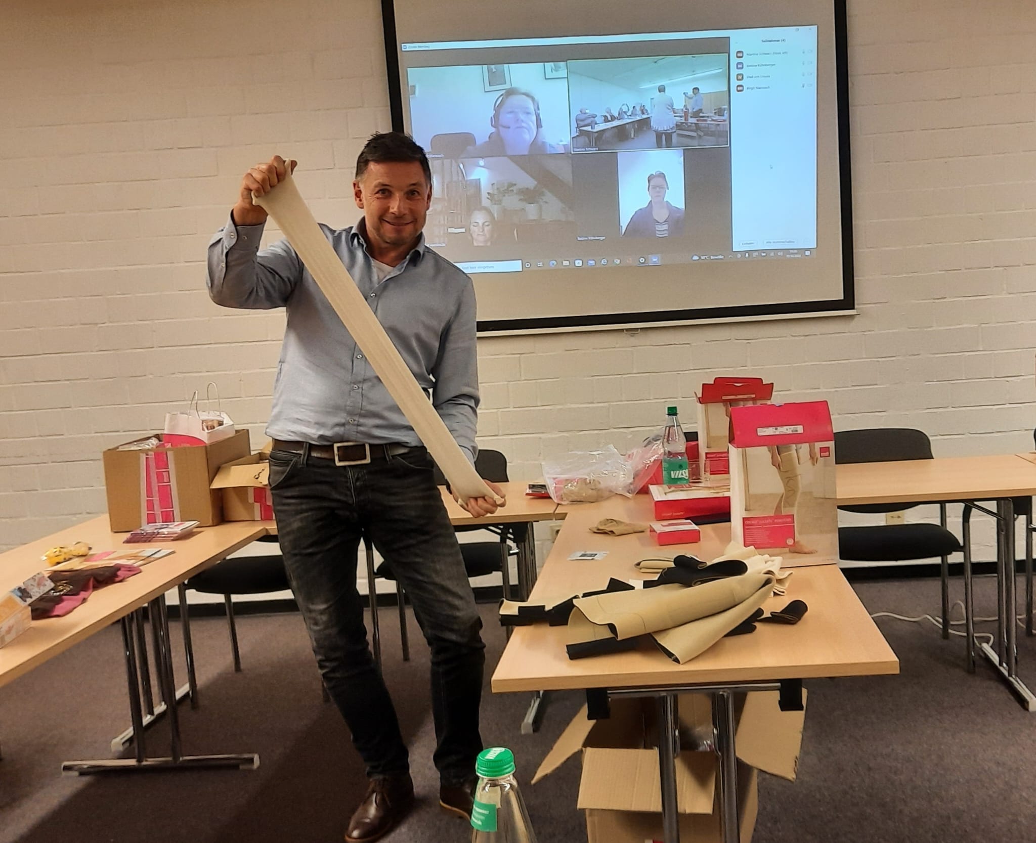 Pierre Ehrlich Handelsvertreter der Firma Thuasne hatte uns besucht. Gezeigt wurden die Farben der Firma und die verschiedenen Möglichkeiten zum Thema Lipödem.