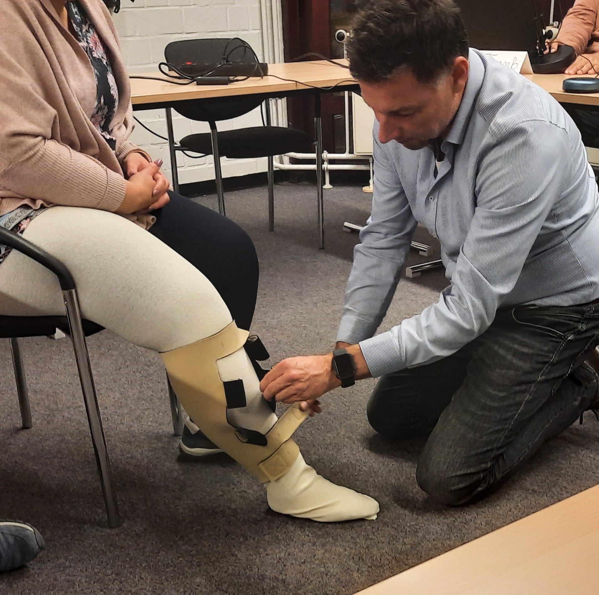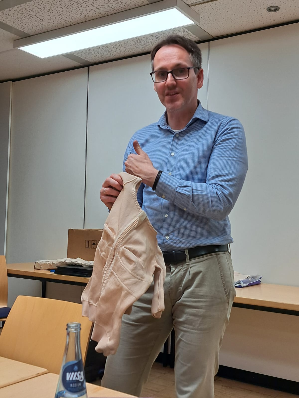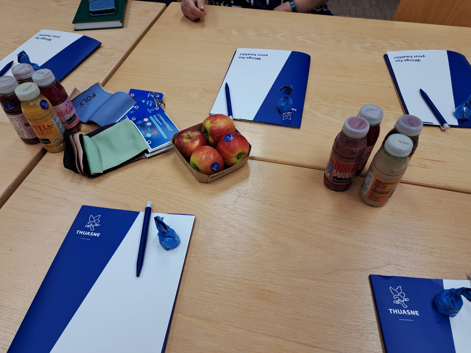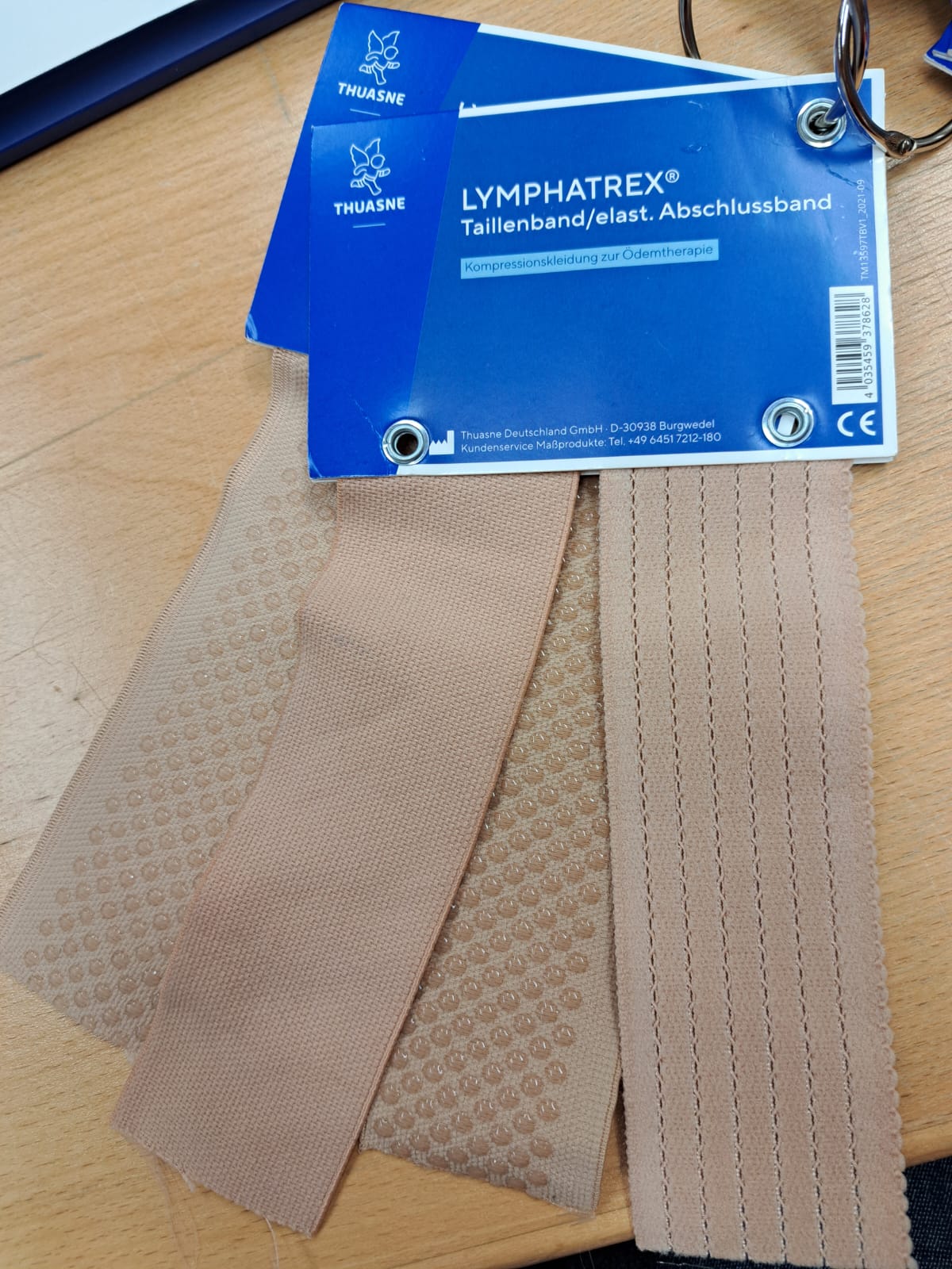 Pierre Ehrlich Handelsvertreter der Firma Thuasne hatte uns besucht. Gezeigt wurden die Farben der Firma und die verschiedenen Möglichkeiten zum Thema Lipödem.