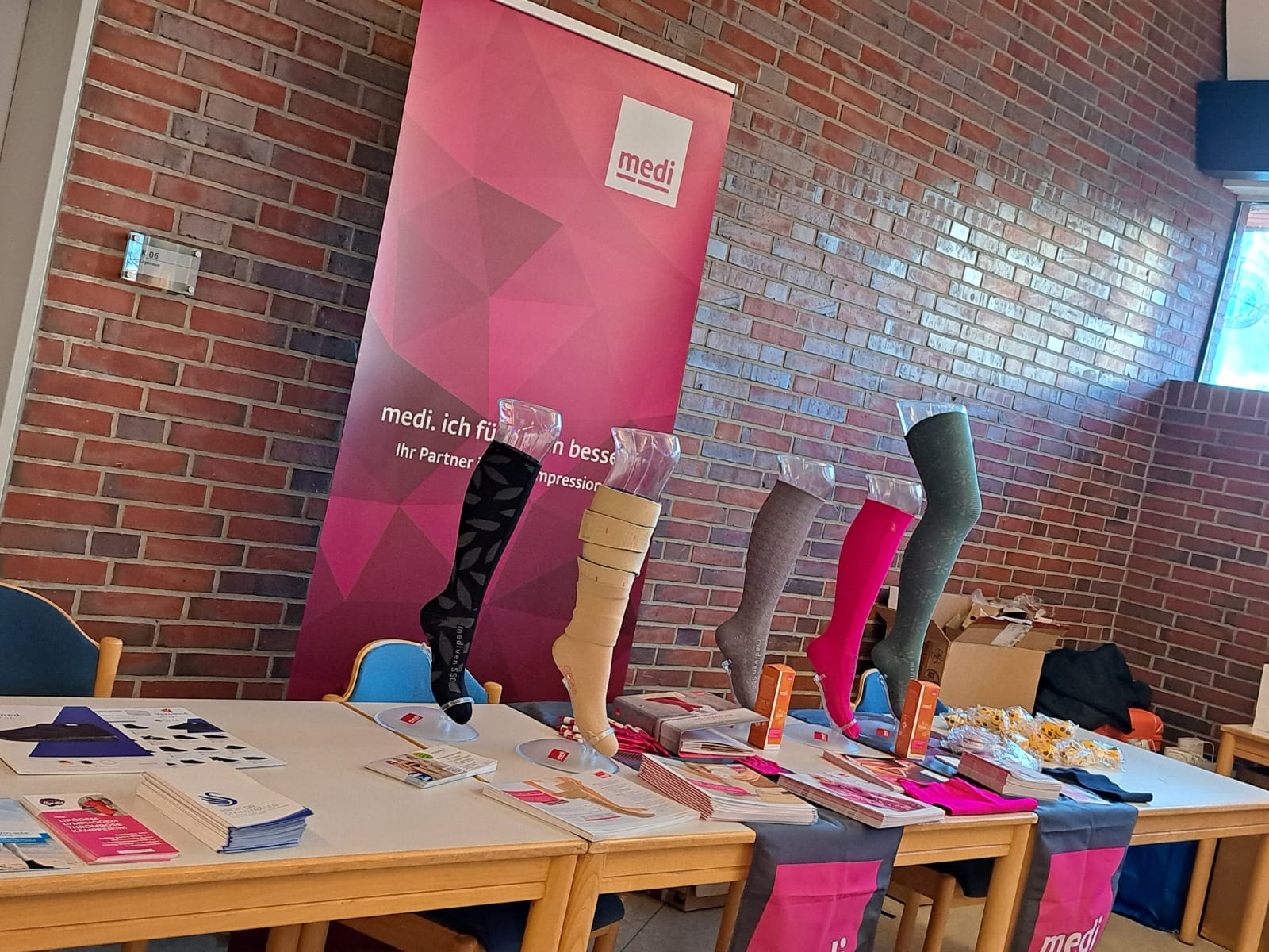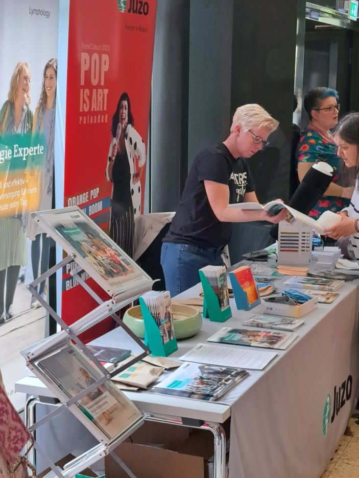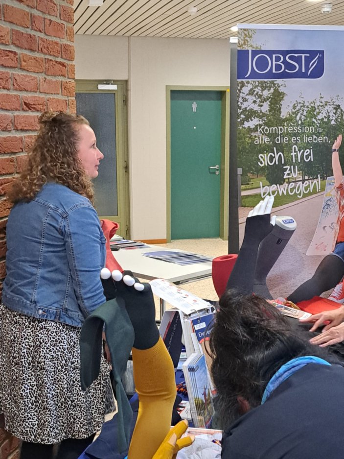 Alle hatten die fantastischen neuen Farben der Firmen Medi Juzo und Jobst im Gepäck und beantworteten alle anstehenden Fragen.