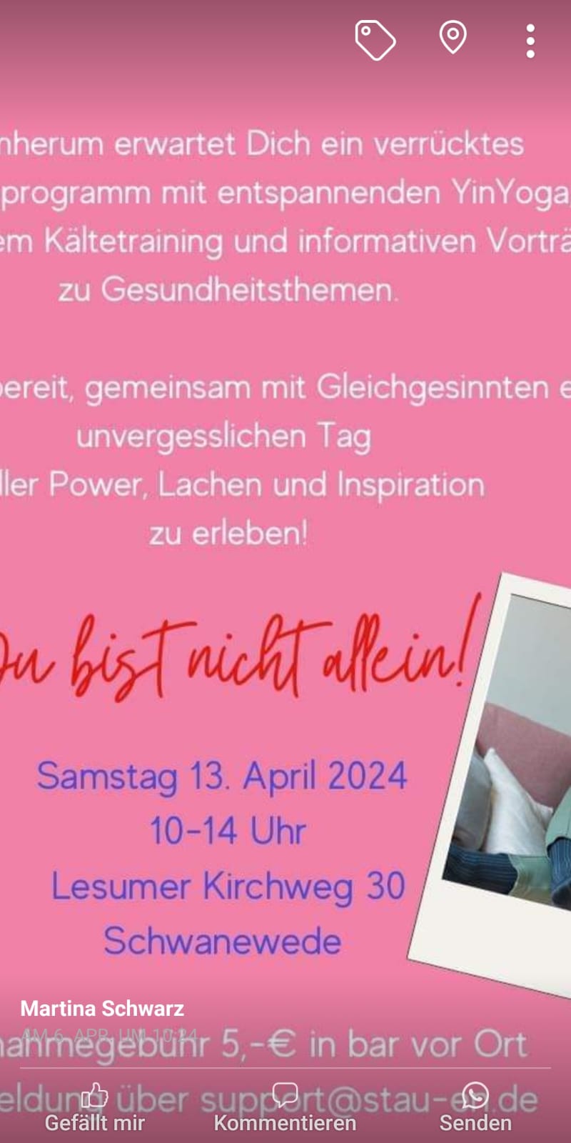 Wir freuten uns sehr, dass wir auf diesem Wege helfen konnten und sind gespannt auf das Ergebnis. Die Selbsthilfegruppe Bremen wünscht den Vieren viel Erfolg.