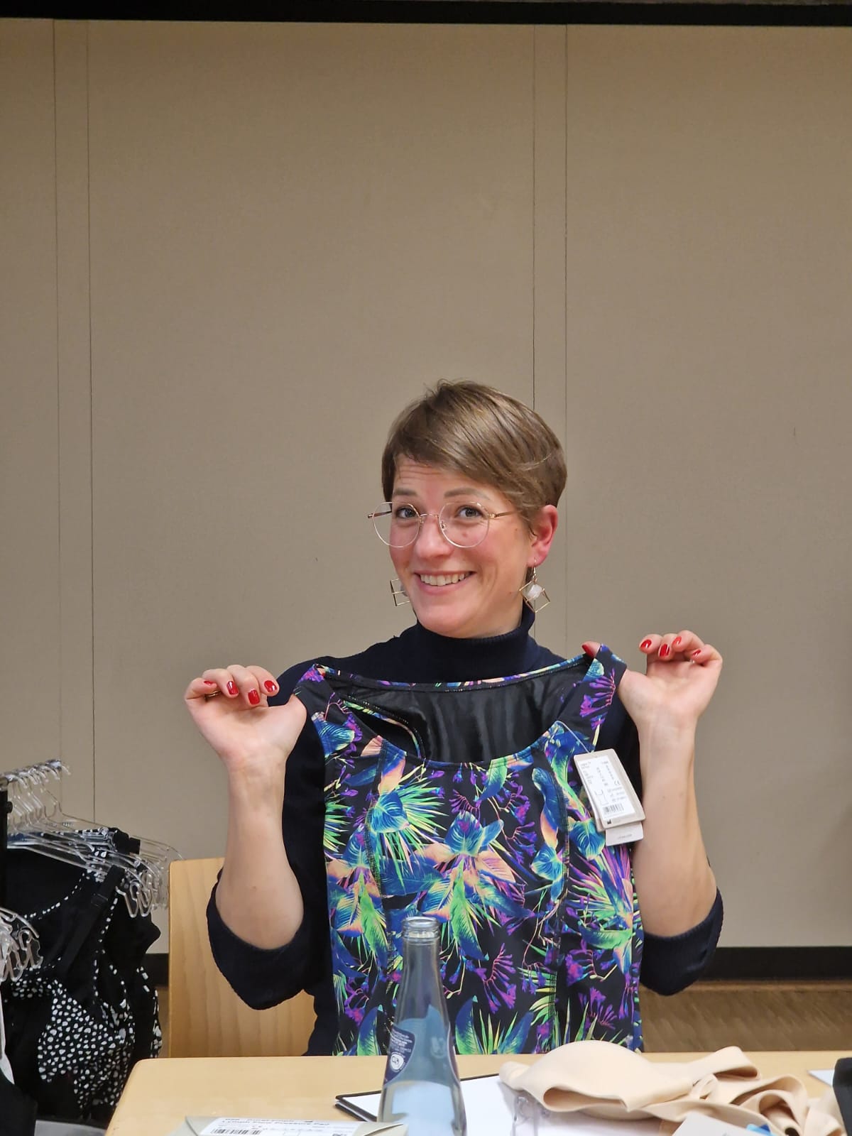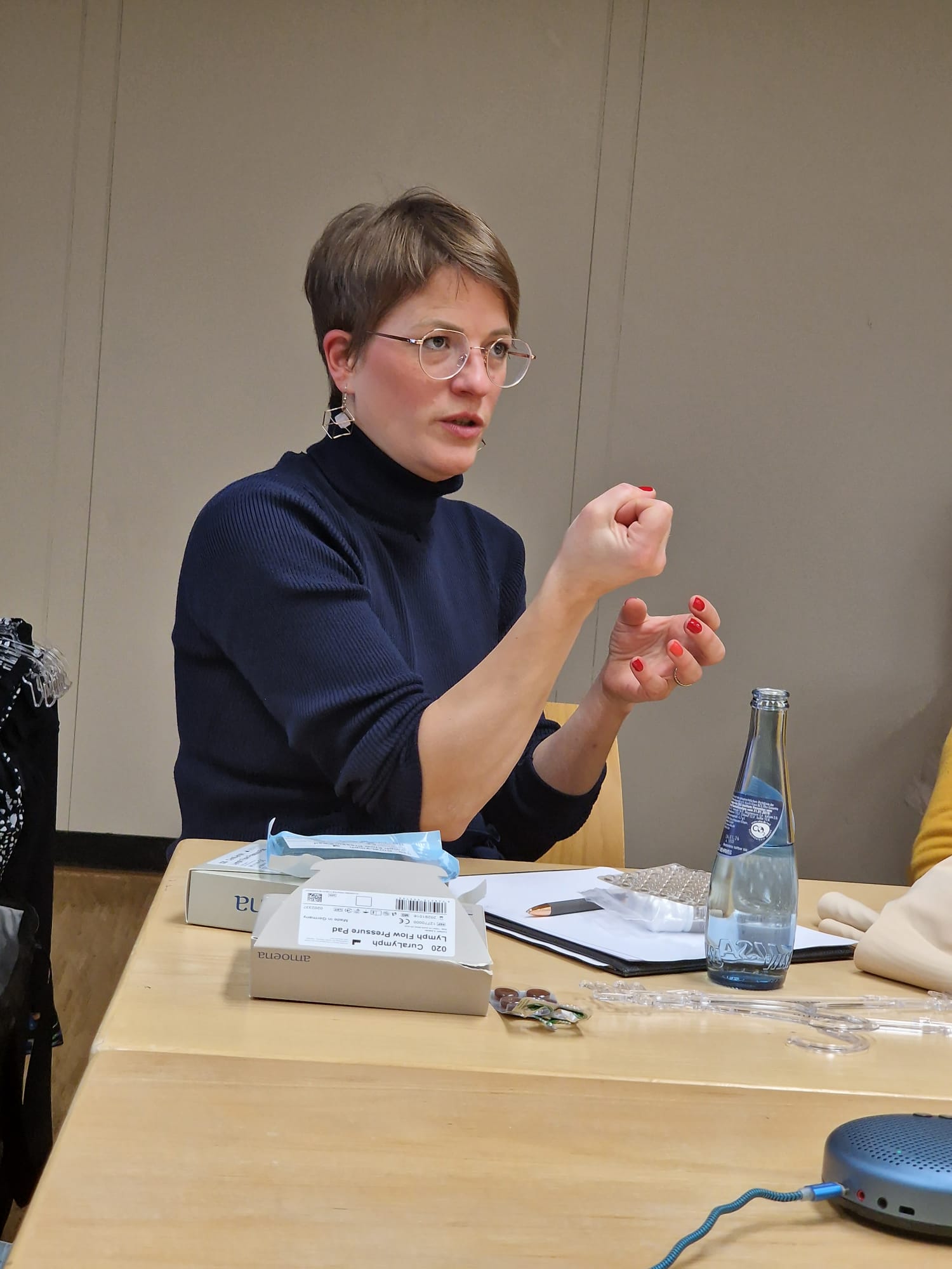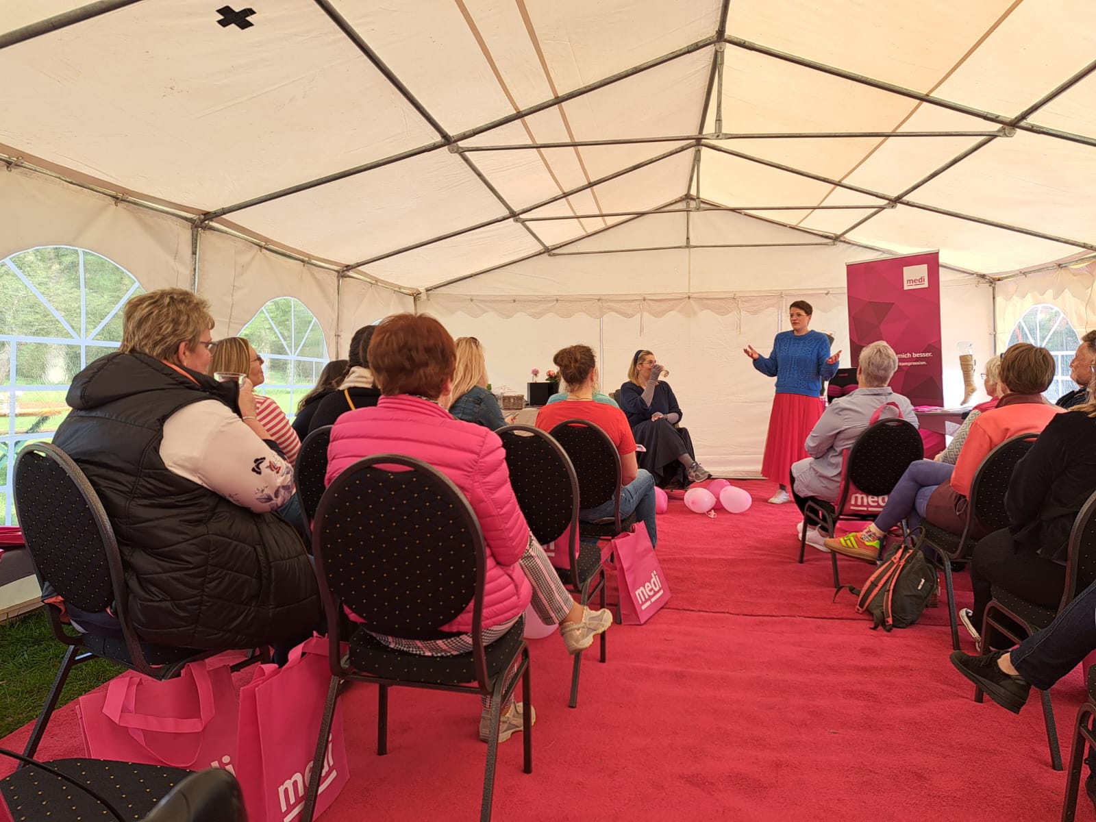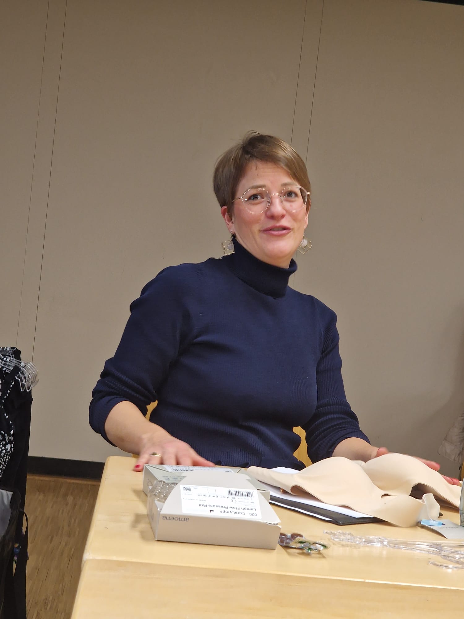 Sie brachte uns die 2 neuen Frühlingsfarben mit und beantwortete die unterschiedlichsten Fragen zur Kompressionsbestrumpfung.