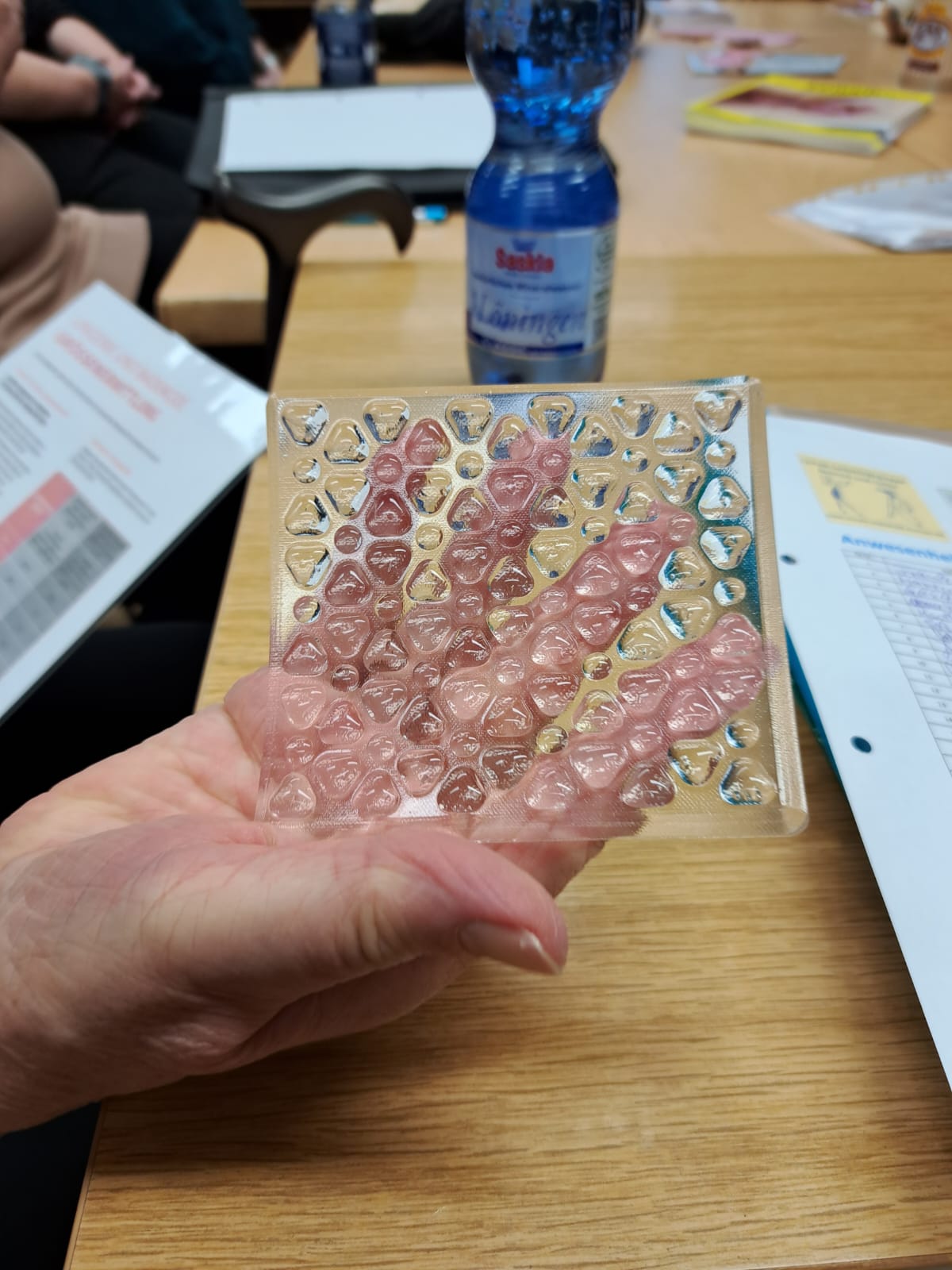 In den jeweiligen Workshops lernten wir Körperspürübungen mit Klangschalen und Gong sowie Anziehhilfen für Kompressionsbestrumpfungen und Ernährungsumstellung "Metabolic-Balance" kennen. Es war ein langer aber schöner informativer Tag für alle Beteiligten. Wir haben uns prima mit anderen Selbsthilfegruppen ausgetauscht und die ein oder andere neue Erkenntnis gewonnen.