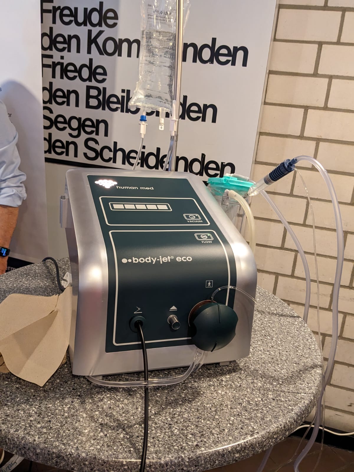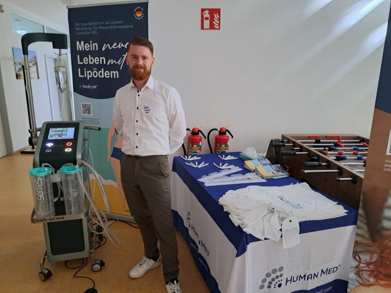 Bei der Veranstaltung am 10.6.23 in Oldenburg von der Selbsthilfegruppe Lily-Oldenburg gab es wieder viele neue Eindrücke. Gleich im Eingangsbereich wurde uns von der Firma Human Med der Apparat für die Wasserstrahl-Assestierte Liposuktion vorgestellt.