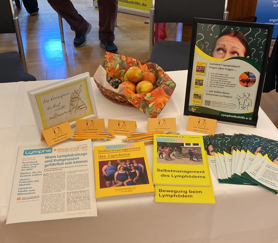 Am 23.9.23 waren Mitglieder der Lymph-Selbsthilfegruppe Bremen zum Selbsthilfetag vom Netzwerk Selbsthilfe Bremen.Sie präsentierten erfolgreich die Gruppe mit einem Infotisch. Es wurden interessante Gespräche geführt auch mit anderen Selbsthilfegruppen. Das Angebot vom Netzwerk wurde von den Bremern gut angenommen.
